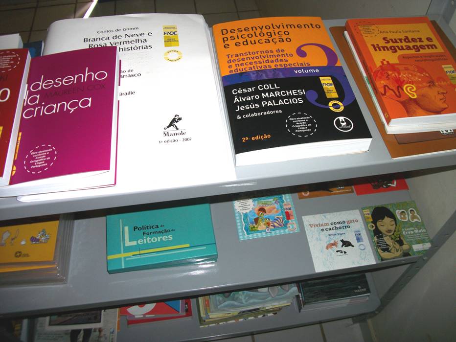 de apoio ao futuro educador. Dentre estes, há revistas e livros que auxiliam no planejamento das aulas, bem como materiais escritos em Braille, áudio-livros e ampla literatura infanto-juvenil.